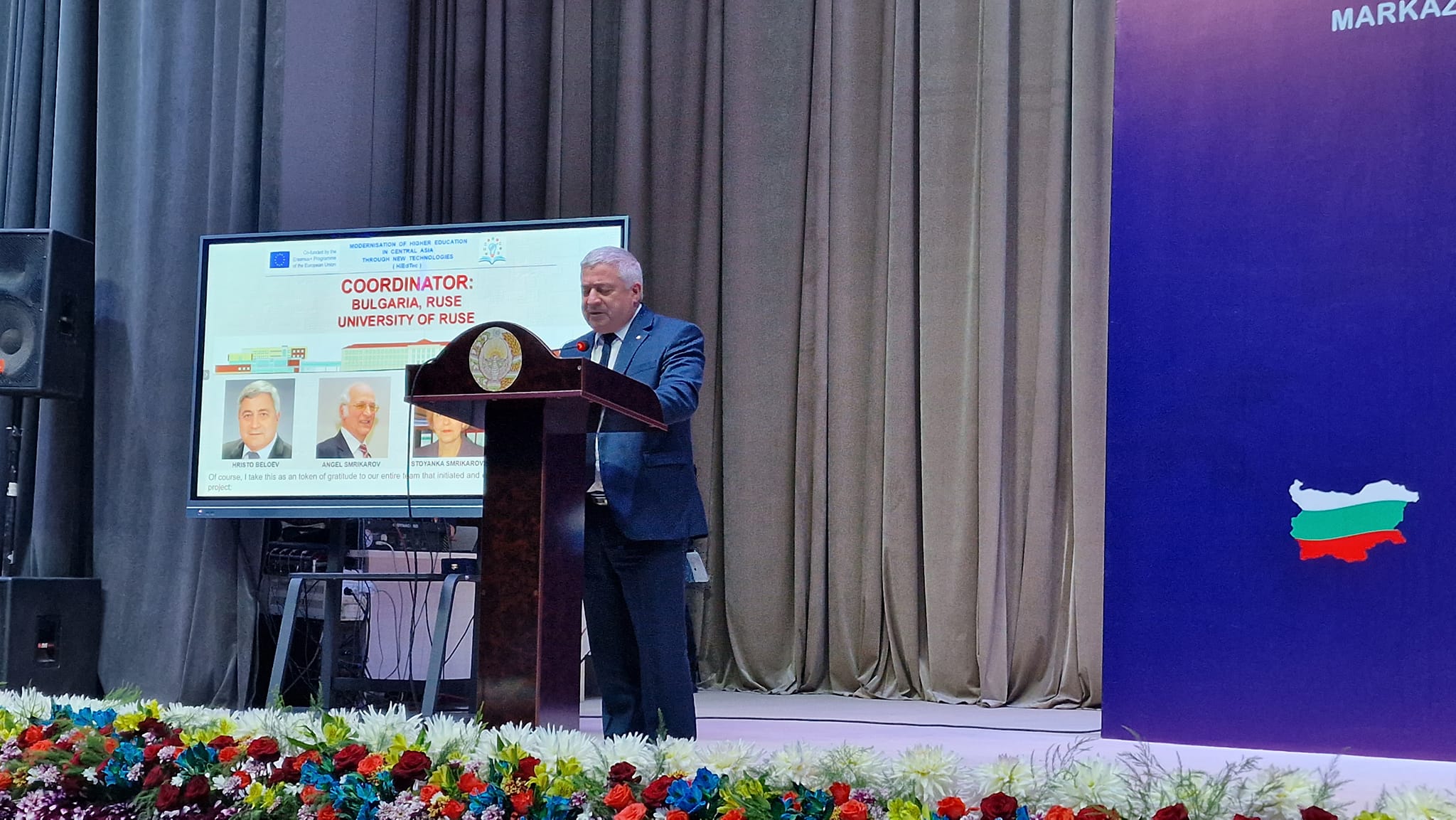 The Rector of the University of Ruse, Academician Hristo Beloev acquainted over 200 participants with the main results of the Eurasian project for modernization of higher education in Central Asia through new technologies (HiEdTec). Under this project, centres for innovative educational technologies, modelled after the one at the University of Ruse, have been set up.