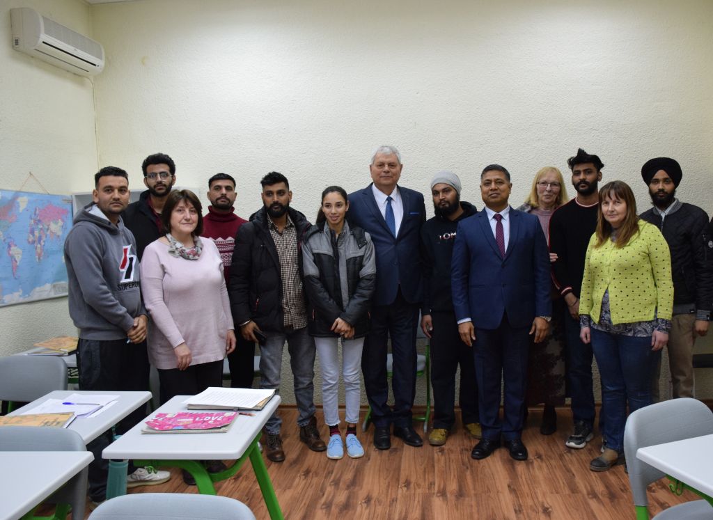 Prof. Kangalov acquainted the guest with the large-scale international cooperation of the University of Ruse with universities from all over Europe and the world. Possibilities for cooperation with universities in India were discussed. Currently, about 20 students from India are studying at the University of Ruse. „I am happy to learn that you are doing so much for the adaptation of the foreign students in Bulgaria and your university", mentioned H.E. Sanjai Rana, after meeting them during their classes. The Body of Rectors invited him to take part in the Festival of Foreign Students in May at the University of Ruse, when he will give a lecture to the academic community about education in India.