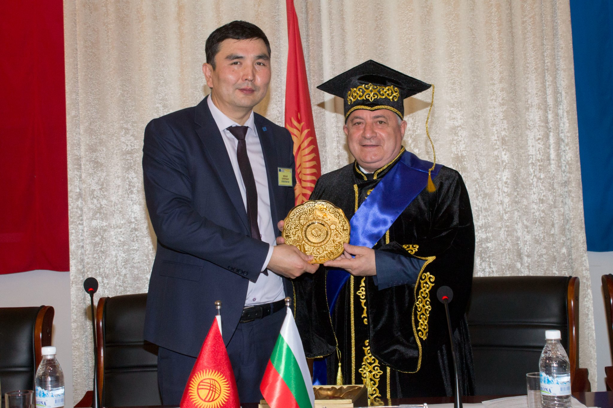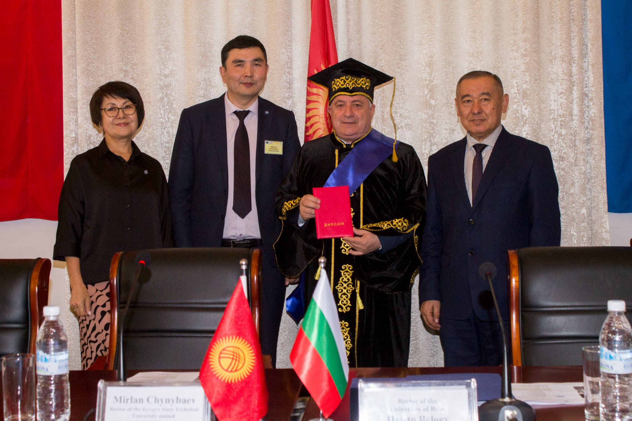 At the beginning of the meeting, the Rector of the University of Ruse, Academician Hristo Beloev, was awarded the title Doctor Honorсis Causa of the Kyrgyz State Technical University "I. Razzakov".