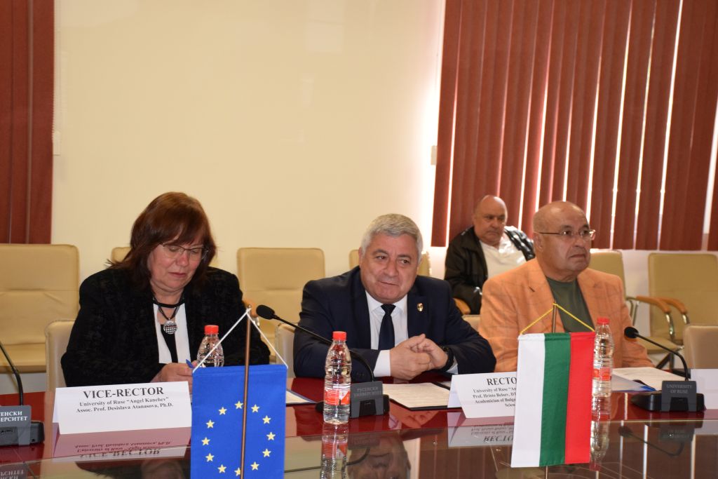 As a participant in the meeting, Acad. Hristo Beloev – Rector of the University of Ruse presented the achievements of the University and its leadership position in the cross-border Bulgarian-Romanian region and the Danube space. With his signature under the Convention for establishing the European Cross-border University ACROSS, Acad. Beloev confirmed the ambitions and priorities of the academic community of the University of Ruse for national and international leadership in education, science, innovations and regional development.