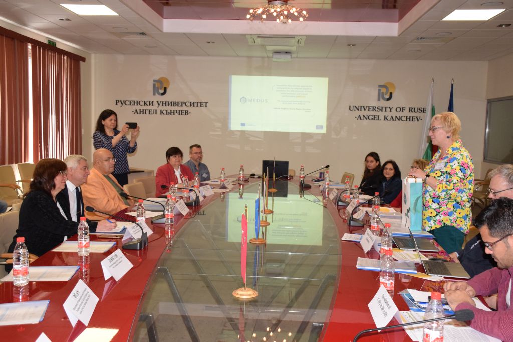 The first international meeting under the Project MEDUS „INOVATIVE EDUCATIONAL APPROACHES AND PRACTICES FOR ENHANCING EFFICIENCY OF SOCIAL INCLUSION AND ACADEMIC PERFORMANCE OF LEARNING MIGRANTS" was held at the University of Ruse