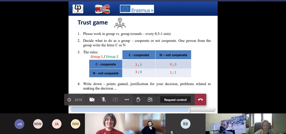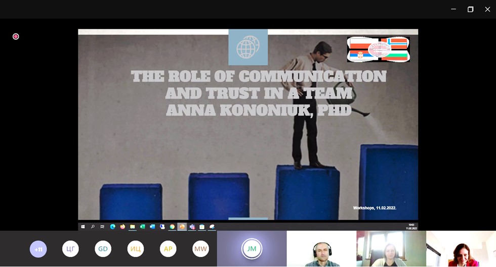 On 11 February, 2022, a workshop on the topic The Role of Communication and Trust in a Team in execution of Activity IO2 under Project 2020-1-PL01-KA226-HE-096196 Holistic approach towards problem-based ICT education based on international cooperation in pandemic conditions (ICT_EDUPAND) was held.